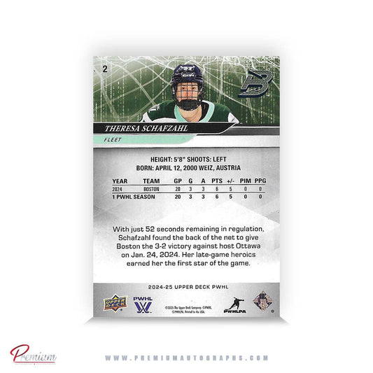 Theresa Schafzahl Boston Fleet Autographed 2024-25 Upper Deck PWHL Hockey Card #2 Ltd /37 Nicknames edn. w/ "T" Inscription