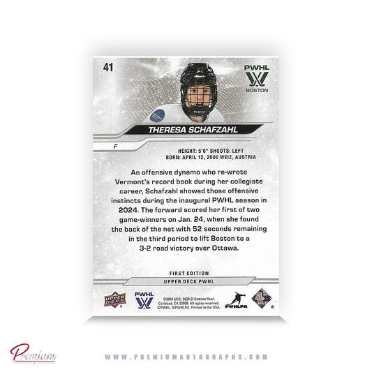 Theresa Schafzahl Boston Fleet Autographed 2024-25 First Edition Upper Deck PWHL Hockey Card #41