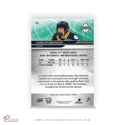 Jaime Bourbonnais New York Sirens Autographed 24-25 Upper Deck PWHL Hockey Card #13 Ltd /14 Nicknames edn. w/ "Jaim" Inscription