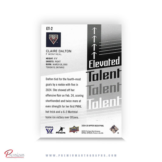 Claire Dalton Montreal Victoire Autographed 2024-25 Upper Deck Elevated Talent Insert PWHL Hockey Card #ET-2