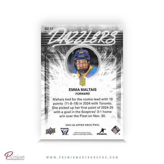Emma Maltais Toronto Sceptres Autographed 2024-25 Upper Deck PWHL Hockey Card #26 Ltd /27 Nicknames edn. w/ "Malts" Inscription