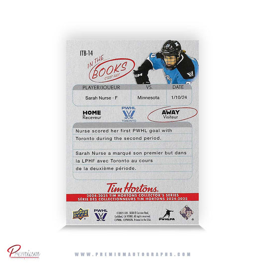 Sarah Nurse Toronto Sceptres Autographed 25-26 Upper Deck PWHL Tim Hortons Hockey Card #ITB-14 In the Books Insert