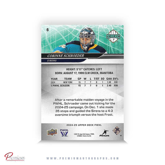 Corinne Schroeder Boston Fleet Autographed 2024-25 Upper Deck PWHL Hockey Card #30 Ltd /30 Nicknames edn. w/ "Schroads" Inscription