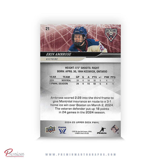 Erin Ambrose Montreal Victoire Autographed 2024-25 Upper Deck PWHL Hockey Card #21 Ltd /23 Nicknames edn. w/ "E" Inscription