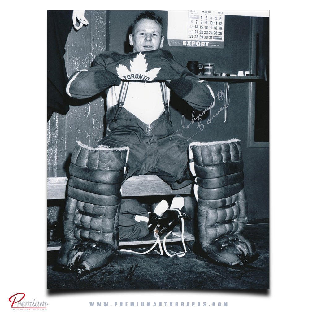 This is a Johnny Bower Toronto Maple Leafs Autographed 8x10 Photograph Locker Room .