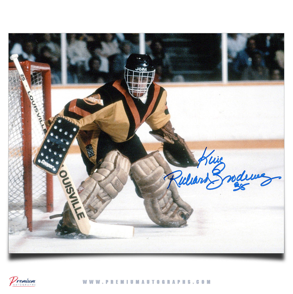 This is a Richard Brodeur Vancouver Canucks Signed 8x10 Photograph Focused