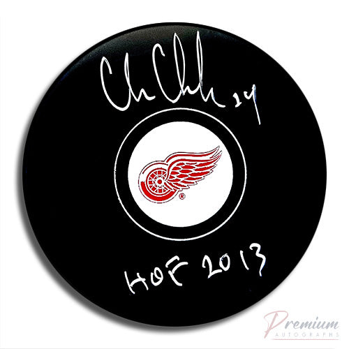 Chris Chelios Detroit Red Wings Signed Puck w/ HOF 2013 Inscription