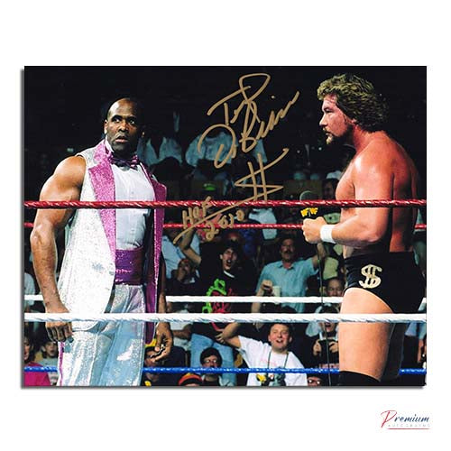 This is a Ted DiBiase "Million Dollar Man" WWE Signed 8x10 in Ring w/ HOF 2010 Inscription (Gold paint)