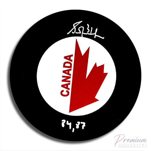 Grant Fuhr Team Canada Signed Puck w/ 84 & 87 Inscription