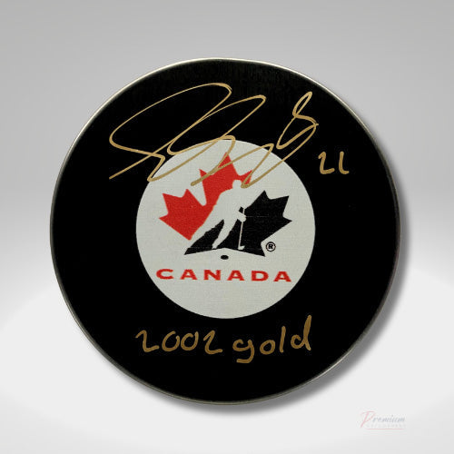 Simon Gagne Team Canada Signed Puck w/ 2002 Gold Inscription
