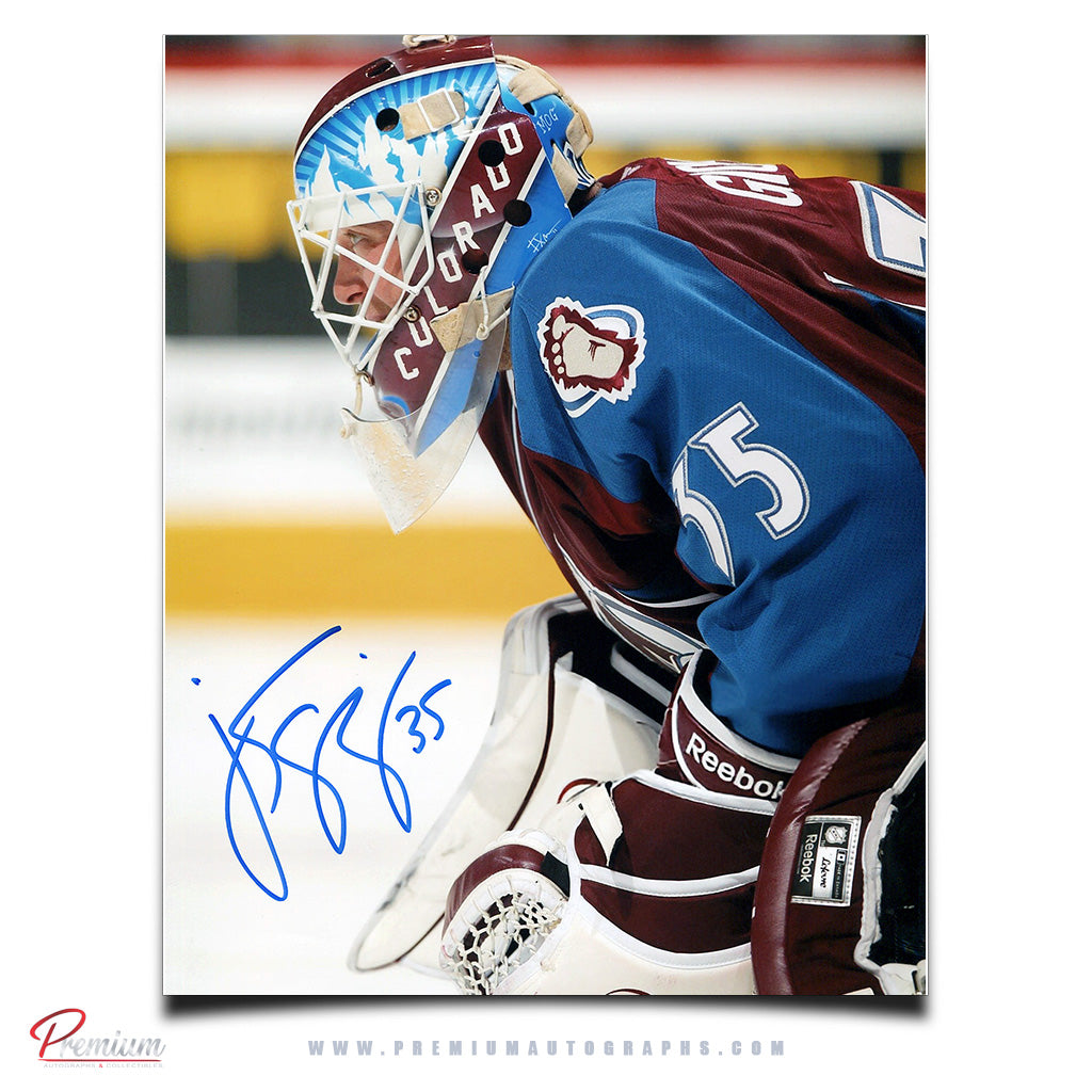 This is a Jean-Sebastien Giguere Hartford Whalers Signed 8x10 Photograph Top of the Crease.