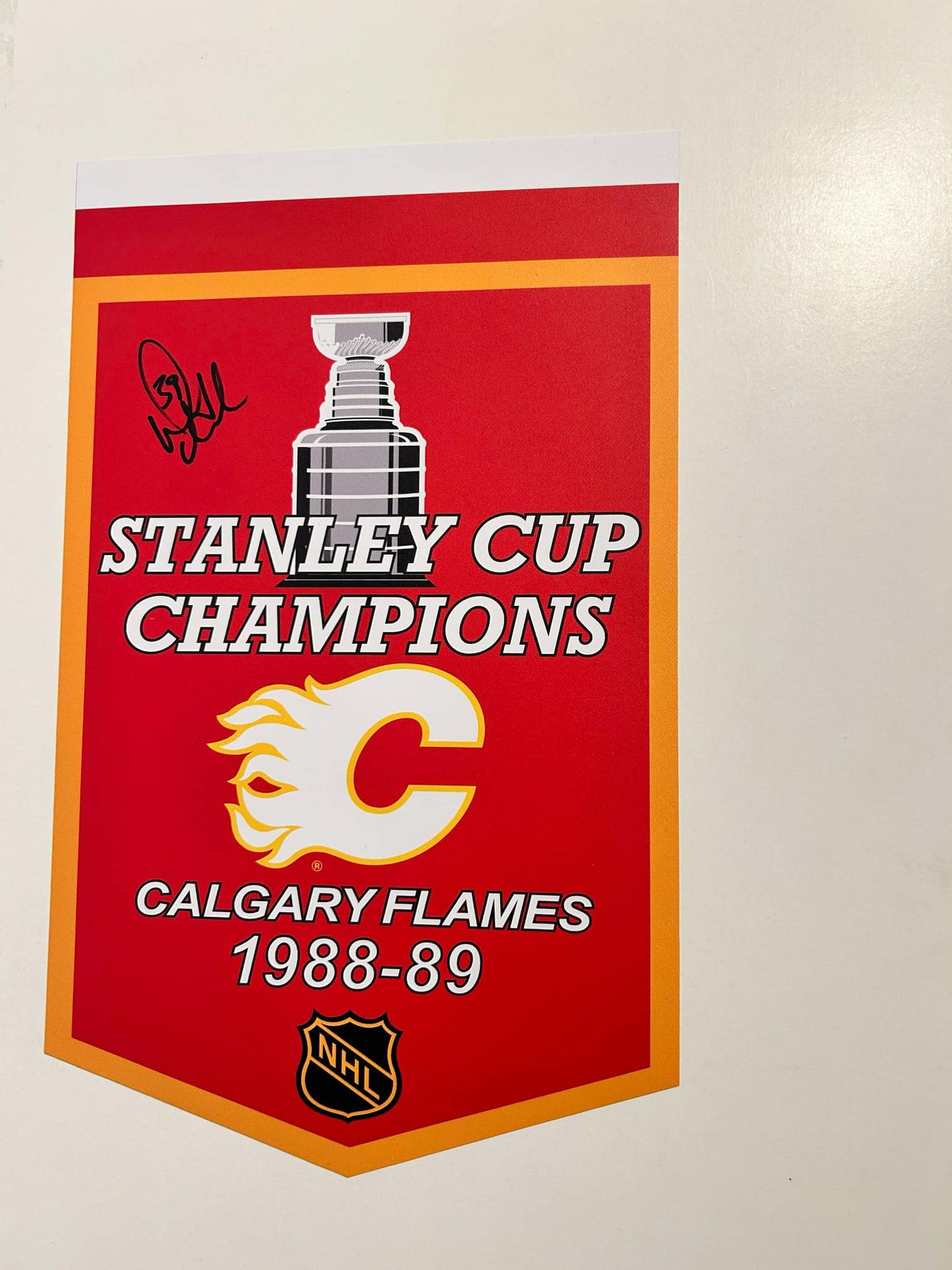 Doug Gilmour Calgary Flames Stanley Cup Champions 1988-89 Autographed Banner Black paint pen