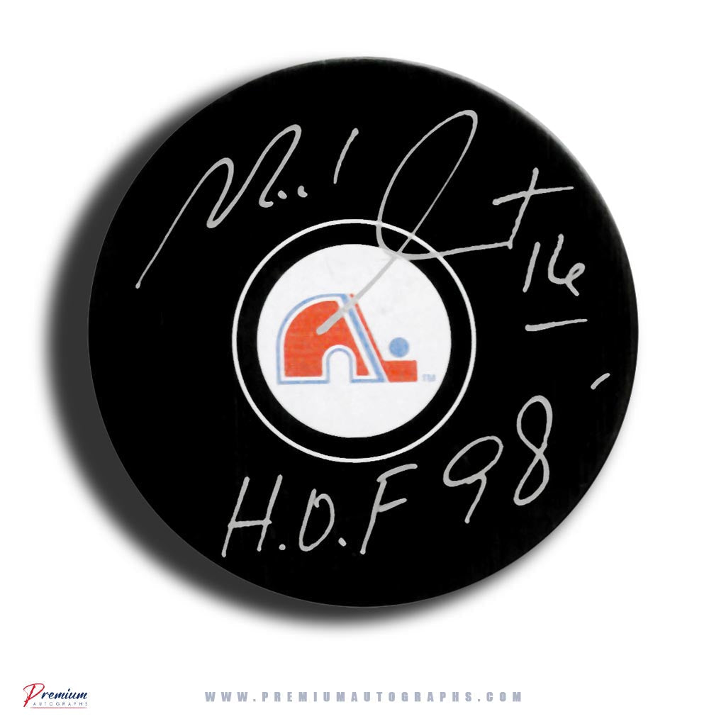 Michel Goulet Quebec Nordiques Signed Puck w/ HOF 98 Inscription