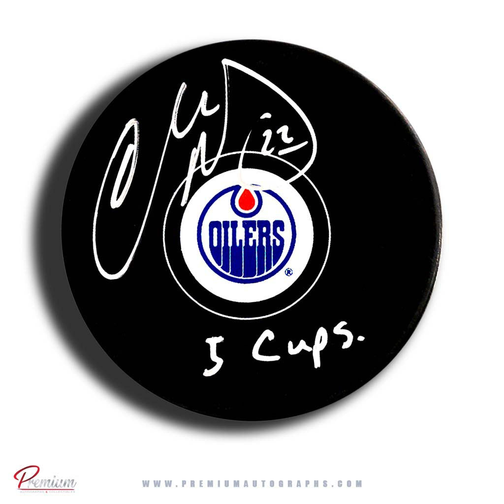 Charlie Huddy Edmonton Oilers Autographed Puck w/ 5 Cups