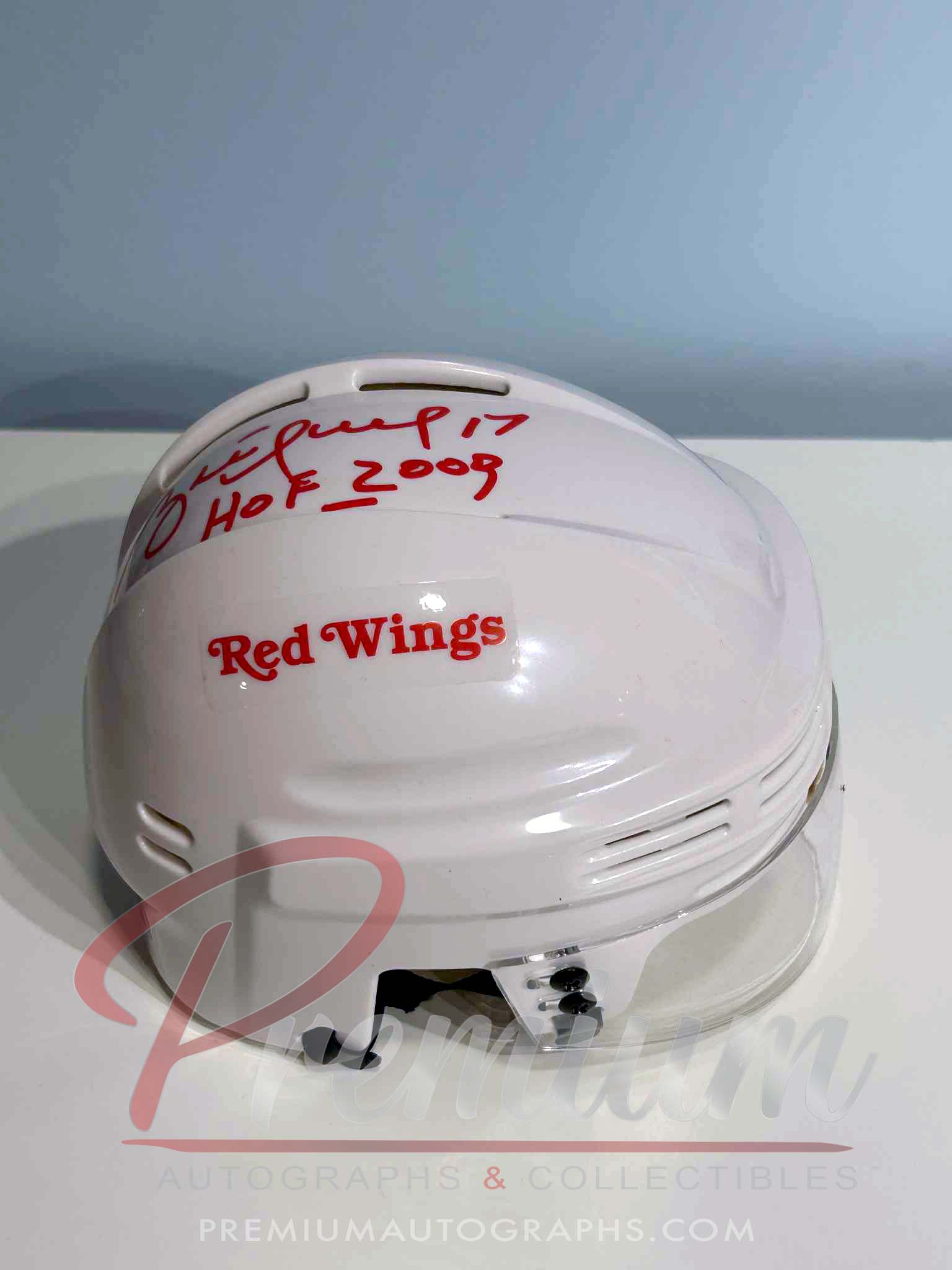 This is a Brett Hull Detroit Red Wings Autographed Mini Helmet w/ HOF 2009 Inscription.