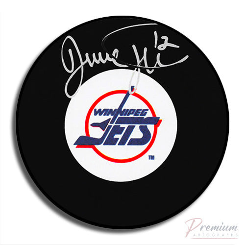 This is a Dave Hunter Winnipeg Jets Signed Puck