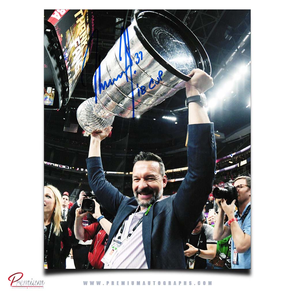 Olaf Kolzig Washington Capitals Autographed 8x10 Photograph Stanley Cup Celebration w/ 18 Cup Inscription