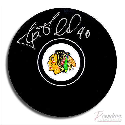 This is a Patrick Lalime Chicago Blackhawks Signed Puck