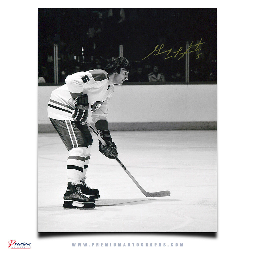 Guy Lapointe Montreal Canadiens Signed 8x10 Photograph With the Puck w/ HOF 93 Inscription