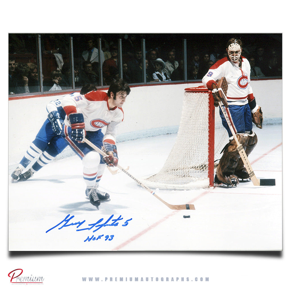 Guy Lapointe Montreal Canadiens Signed 8x10 Photograph Around the Net w/ HOF 93 Inscription
