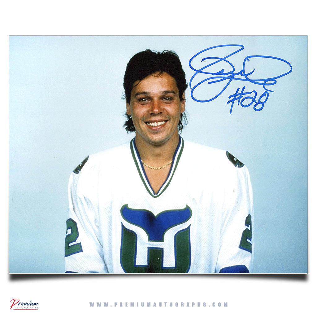 This is a Pierre Larouche Hartford Whalers Signed 8x10 Photograph Portrait