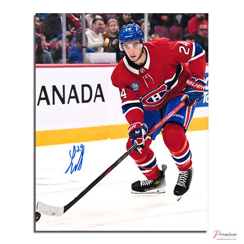This is a Logan Mailloux Montreal Canadiens Signed 8x10 Action