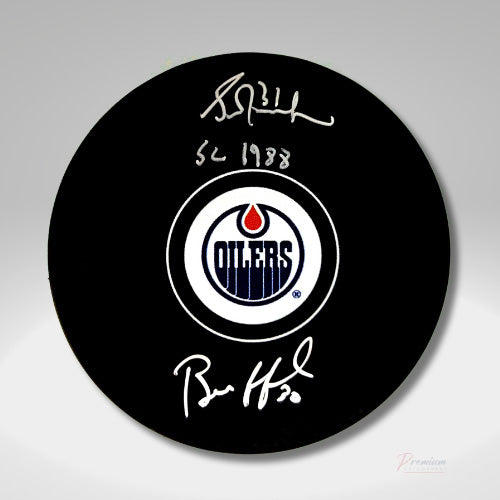 Grant Fuhr & Bill Ranford Edmonton Oilers Signed Puck w/ SC 88