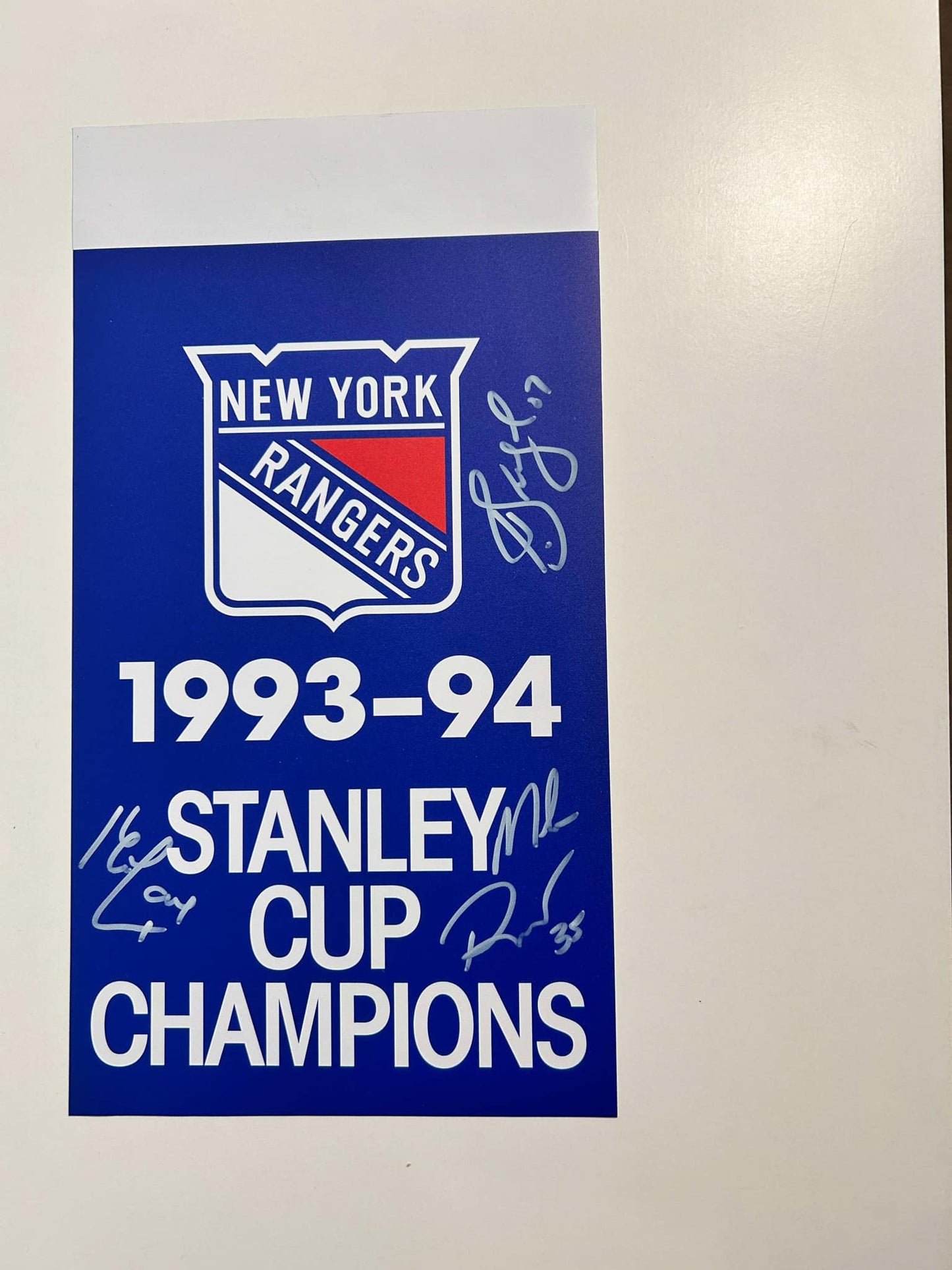New York Rangers 1993-94 Stanley Cup Champions Banner Autographed by Alex Kovalev, Kevin Lowe & Mike Richter white paint