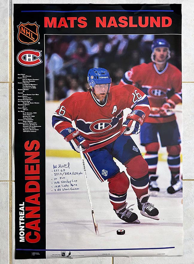 This is a Mats Naslund Montreal Canadiens Signed 2.75x3.75 in Poster w/ 6 Career Inscriptions