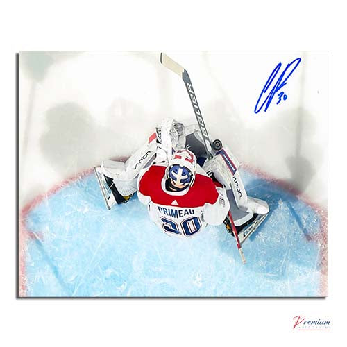 This is a Cayden Primeau Montreal Canadiens Signed 8x10 Birds Eye