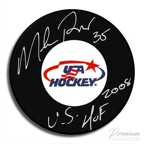 Mike Richter USA Signed Puck w/ US HOF 2008 Inscription