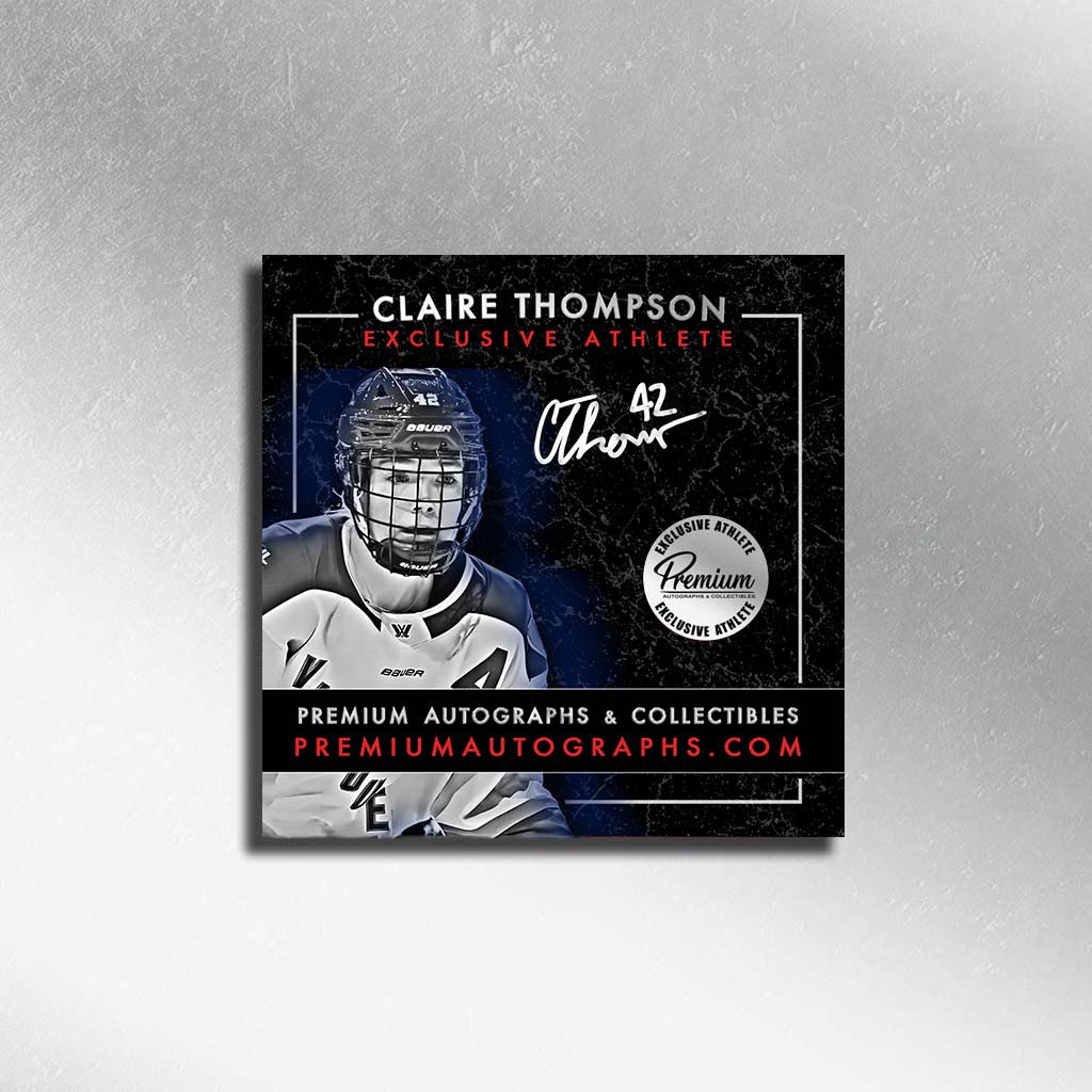 This is a Claire Thompson Vancouver Goldeneyes PWHL Autographed 8x10 Photograph Passing.