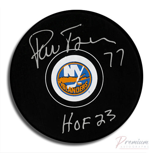 This is a Pierre Turgeon New York Islanders Signed Puck w/ HOF Inscription