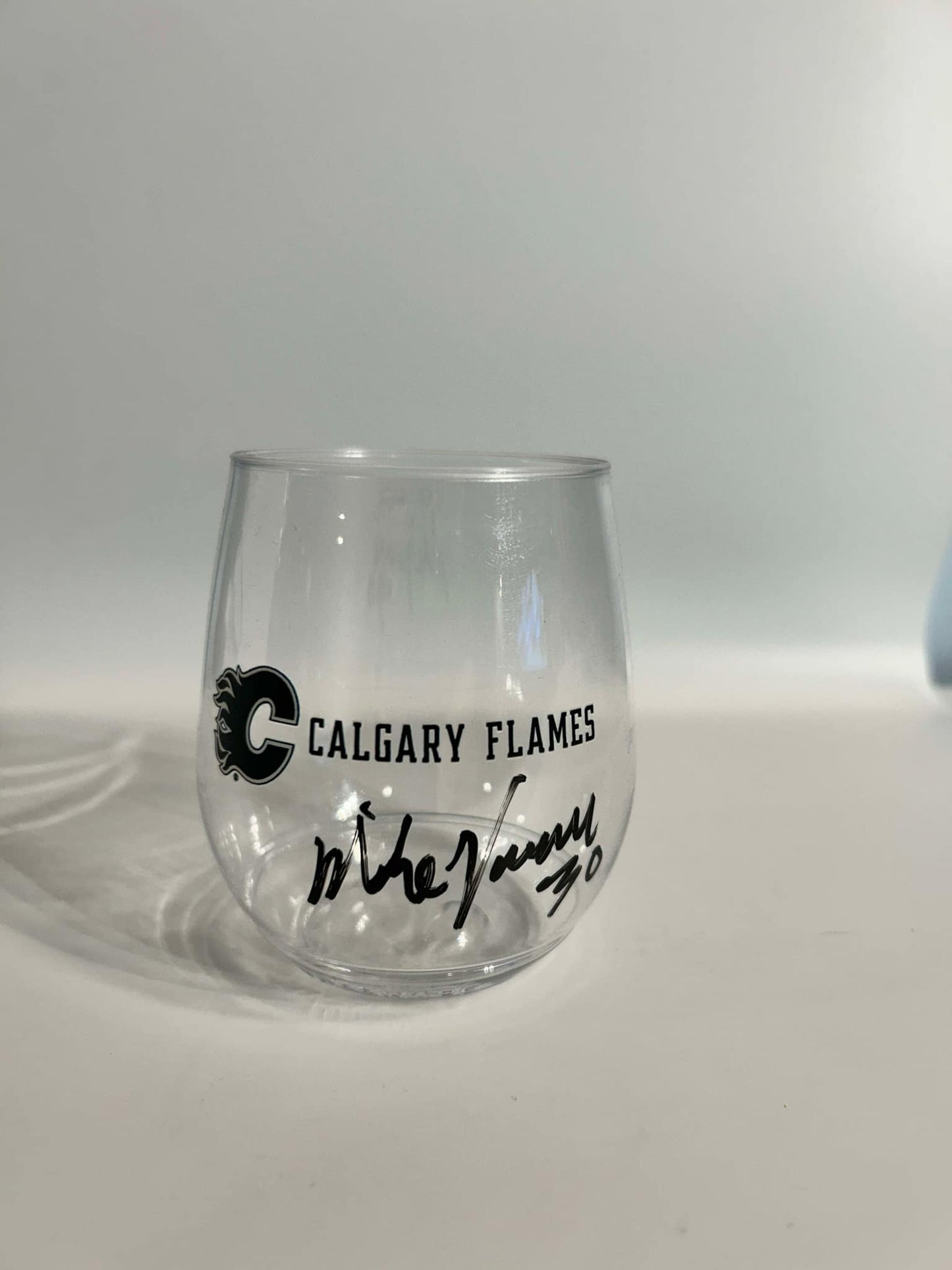 This is a Mike Vernon Calgary Flames Autographed Drinking Glass