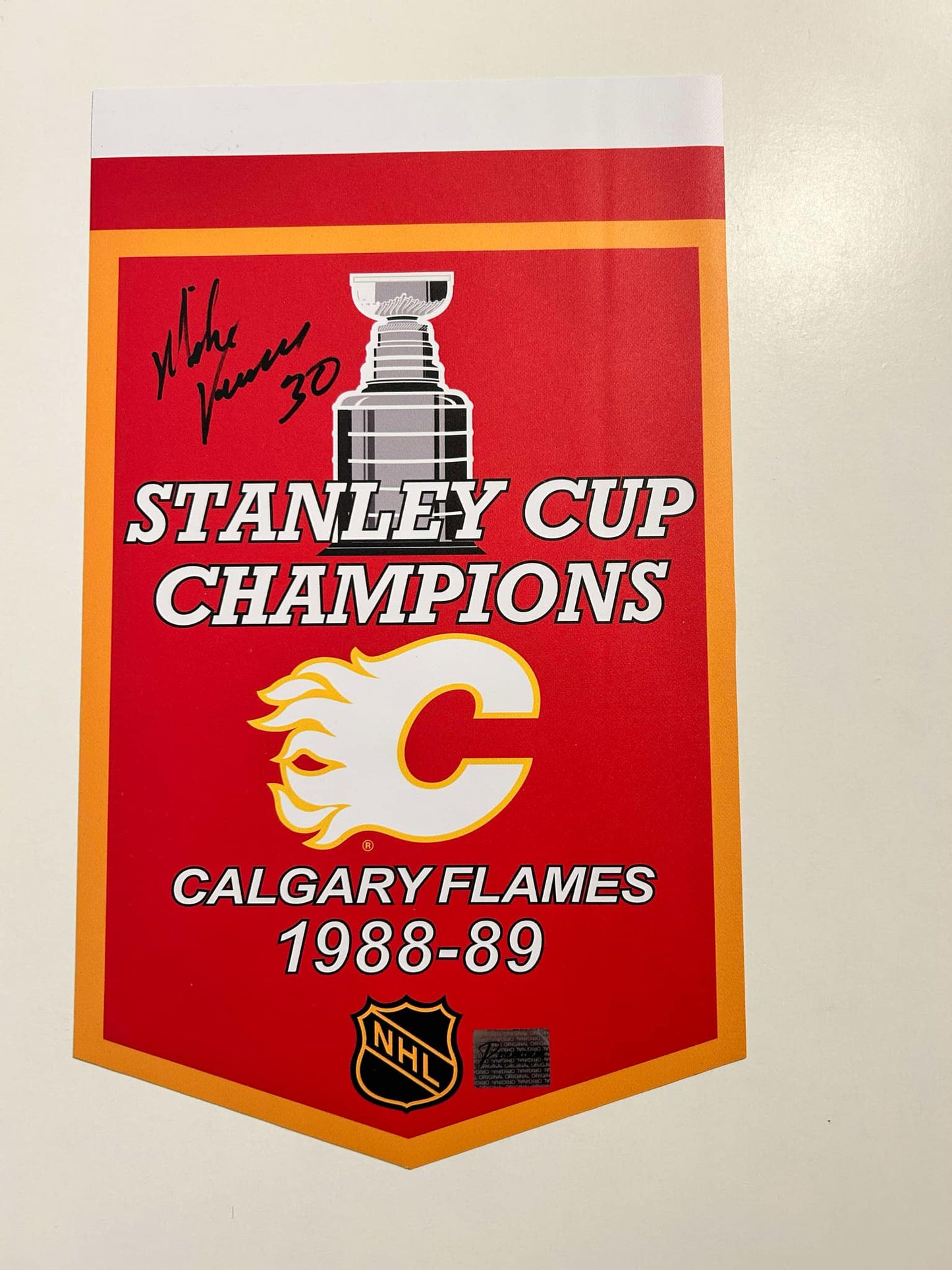 Mike Vernon Calgary Flames Stanley Cup Champions 1988-89 Autographed Banner black paint pen