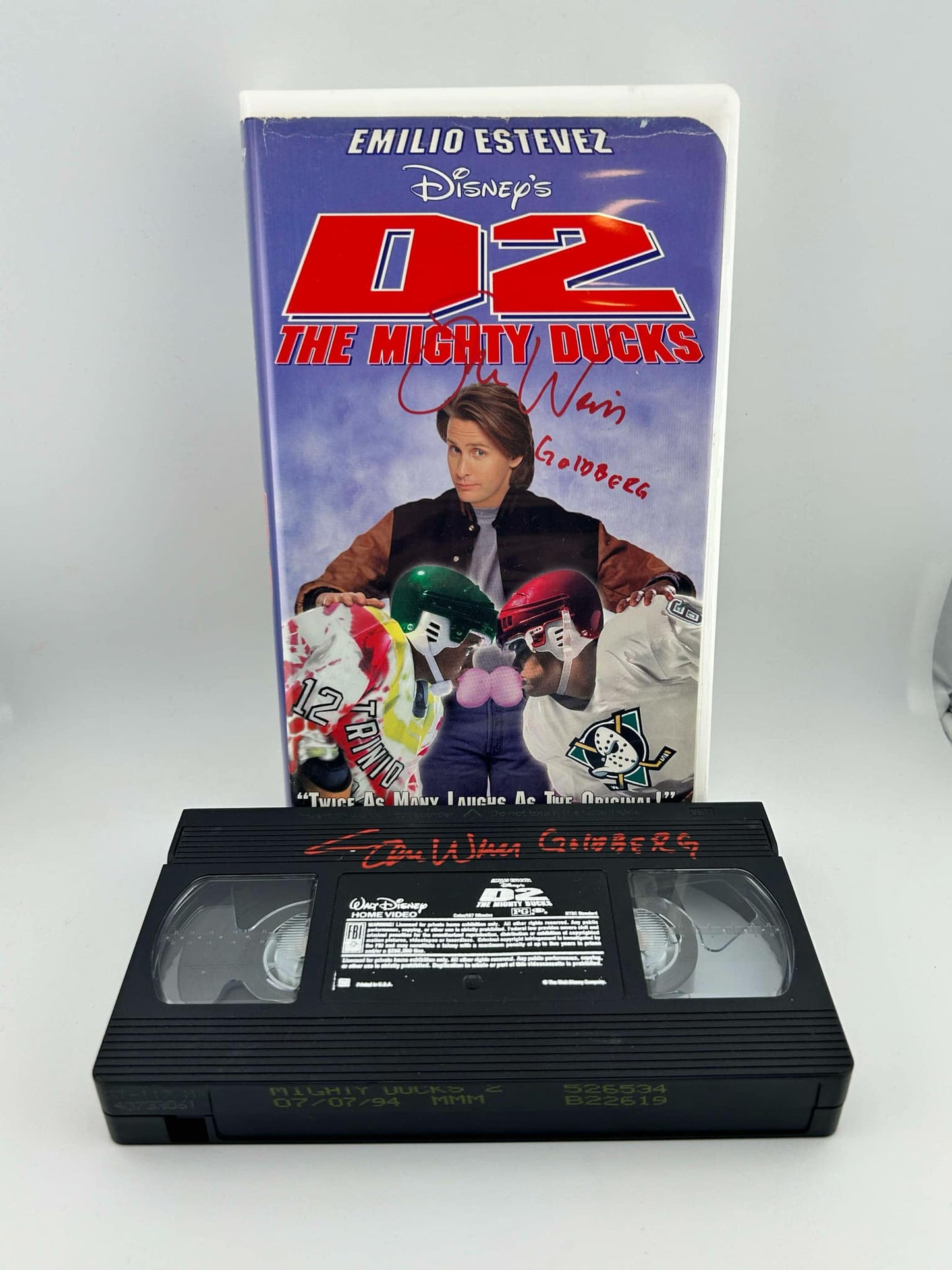 Sean Weise Walt Disney D2 The Might Ducks Autographed on Cover & VHS Tape w/ Goldberg Inscription