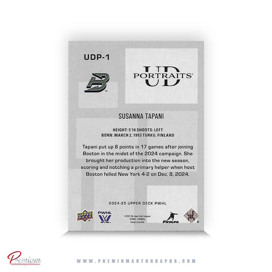 Susanna Tapani Boston Fleet Autographed 2024-25 Upper Deck PWHL Hockey Card UD Portraits #UDP-1